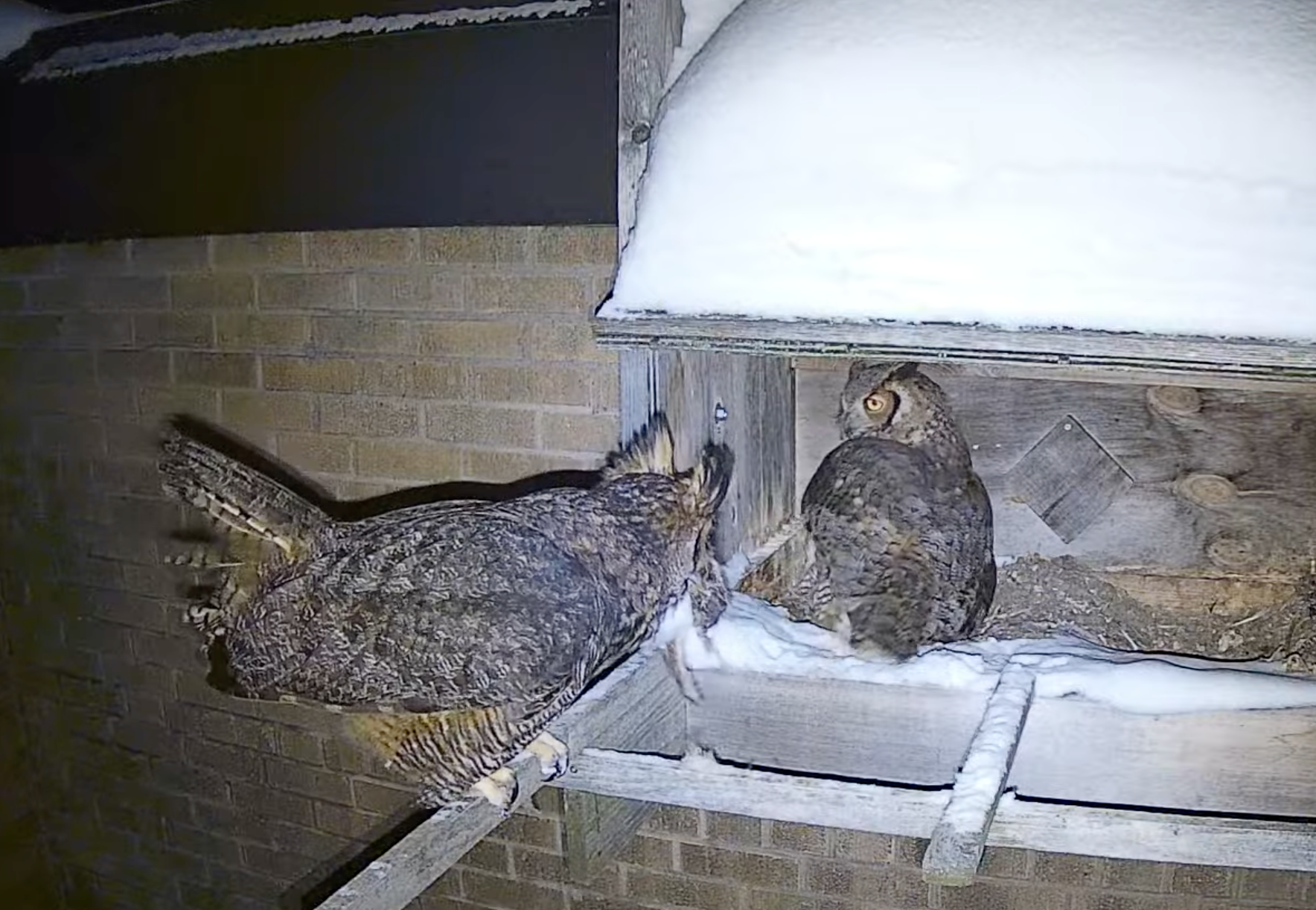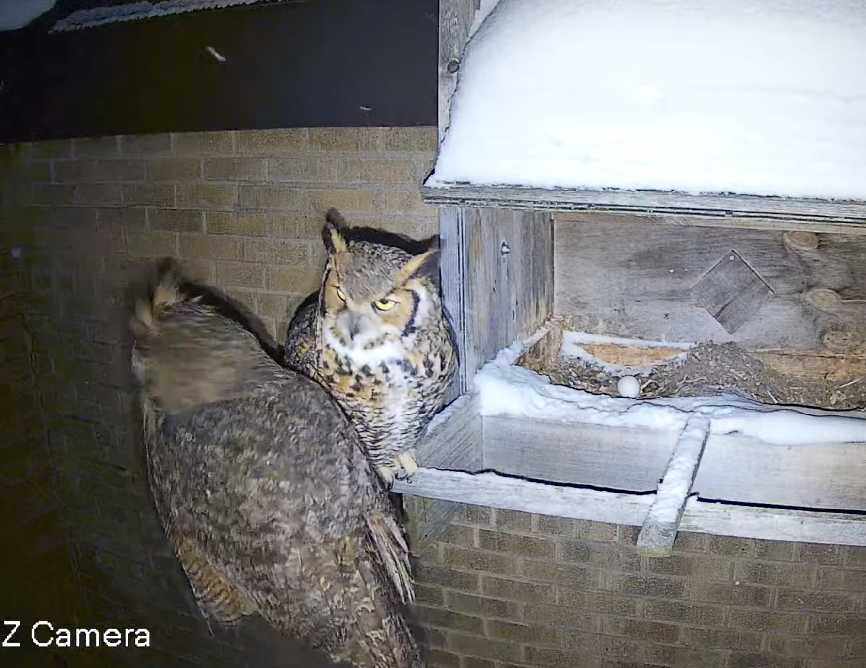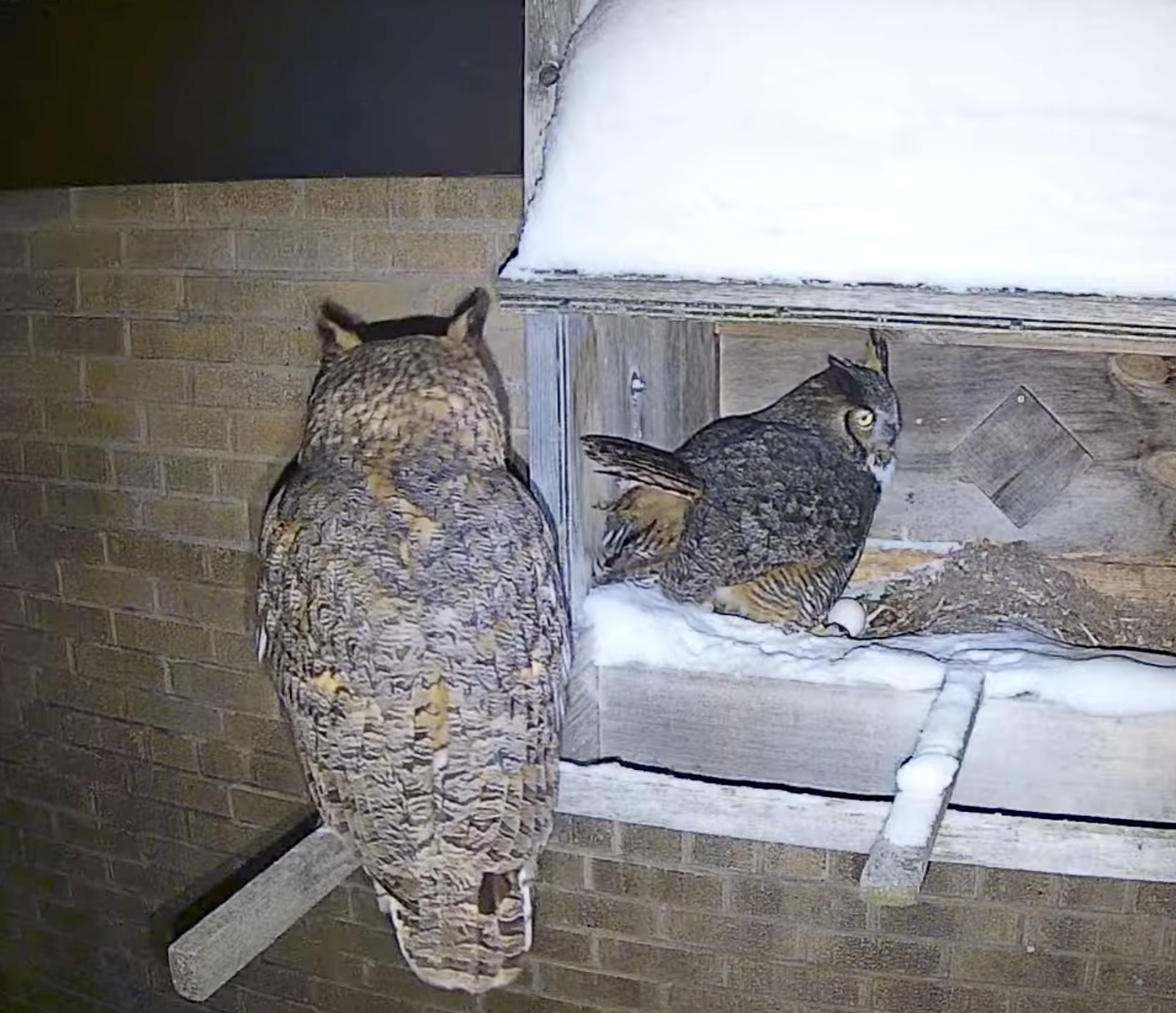 The owls have an egg! And I spotted dinner delivery a few days ago.