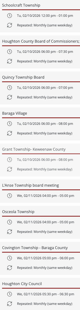 Here's the list view of Elected Official Meetings: https://calendar.online/electedofficialmeetings.