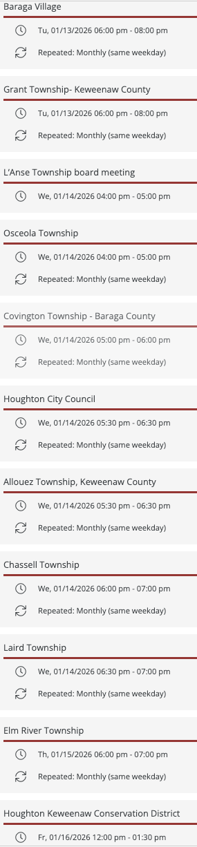 Here's the list view of Elected Official Meetings: https://calendar.online/electedofficialmeetings.
