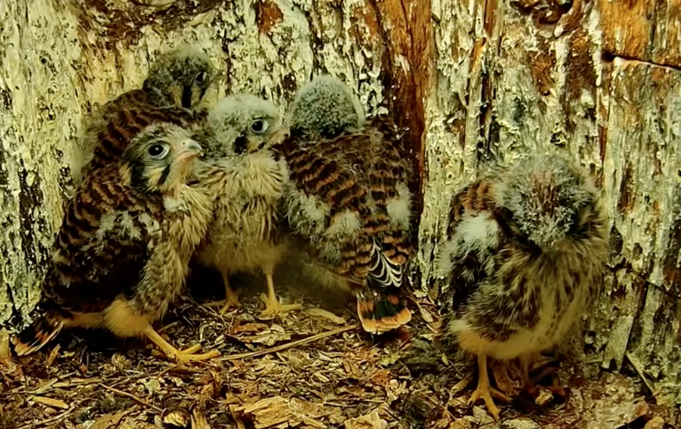 Since the owls are out and about they're rarely visible on the Owlcam, I've started watching this KestrelCam in Wisconsin. The chicks are growing fast!
